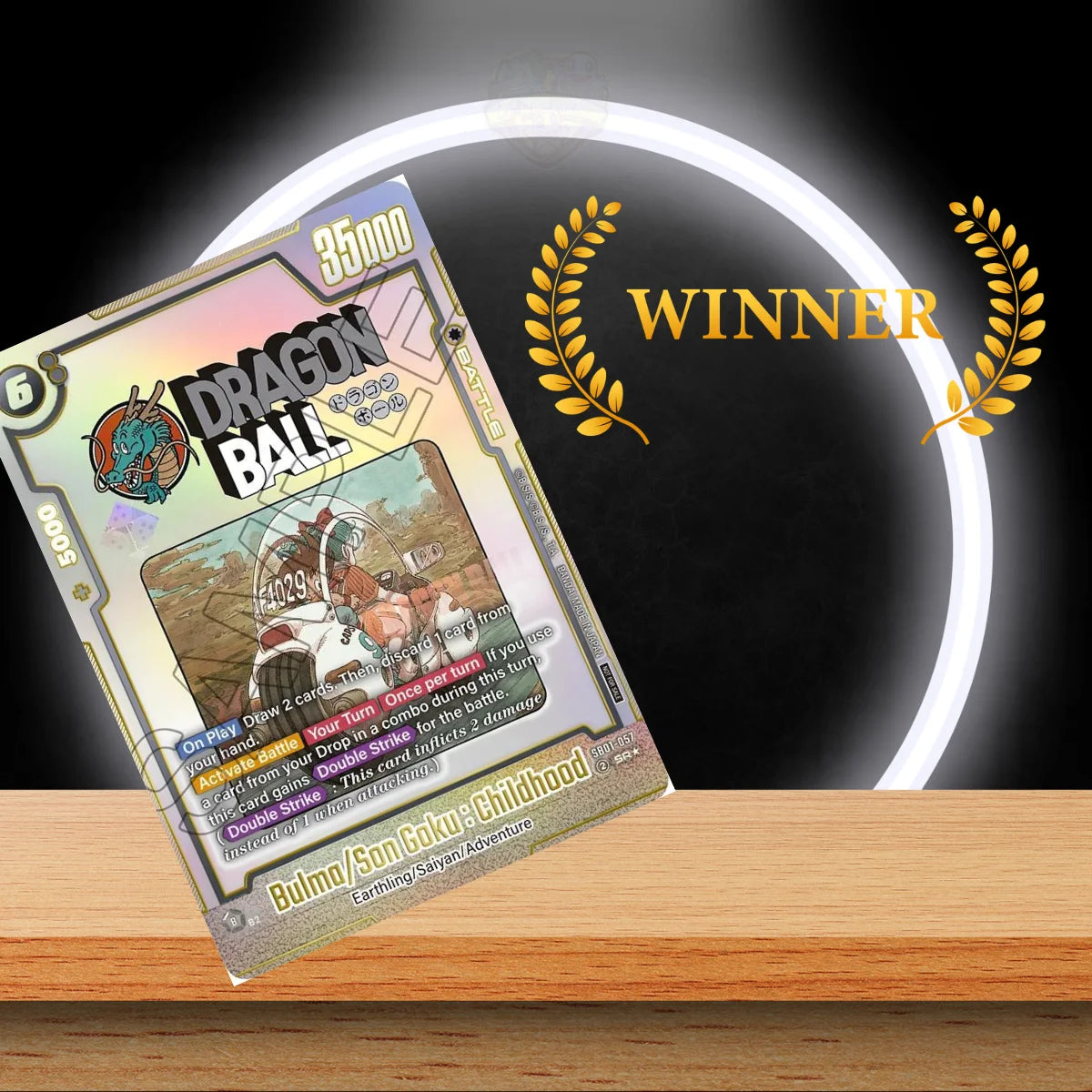 Die Kombination aus Bulma und Son Goku in ihrer Kindheitsphase macht diese Karte zu einem besonderen Stück für Dragon Ball Liebhaber.